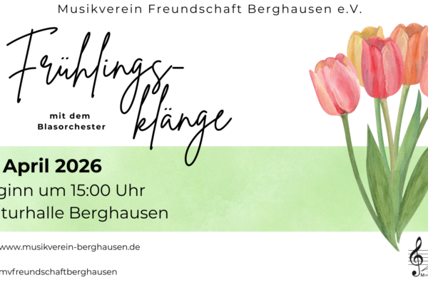 Das Blasorchester freut sich, Sie am Sonntag, 12.04.2026 um 15:00 Uhr in der Kulturhalle Berghausen zum Gute-Laune-Programm „Frühlingsklänge“ begrüßen zu…